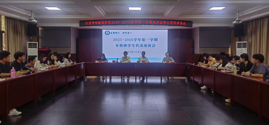 为深入了解本科班学生在学习、生活与就业等方面的实际需求,搭建学校与学生间高效沟通的桥梁,10月15日下午,我校在行政楼多功能厅召开2025-2026学年第一学期本科班学生代表座谈会。校党委委员、教务处处长戴彩云,校党委委员、党委学生工作部部长刘小莲,教务处副处长郭春梅,学工处副处长赵鲜梅与各本科班学生代表一起座谈,会议由戴彩云主持。